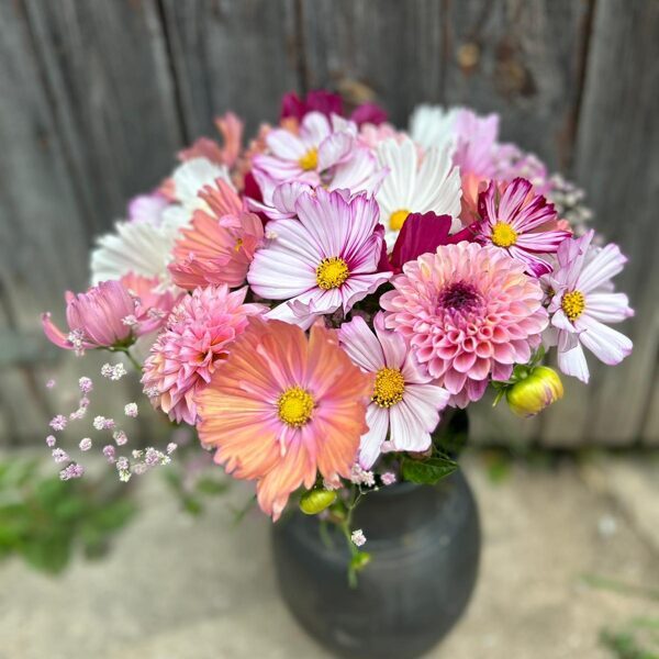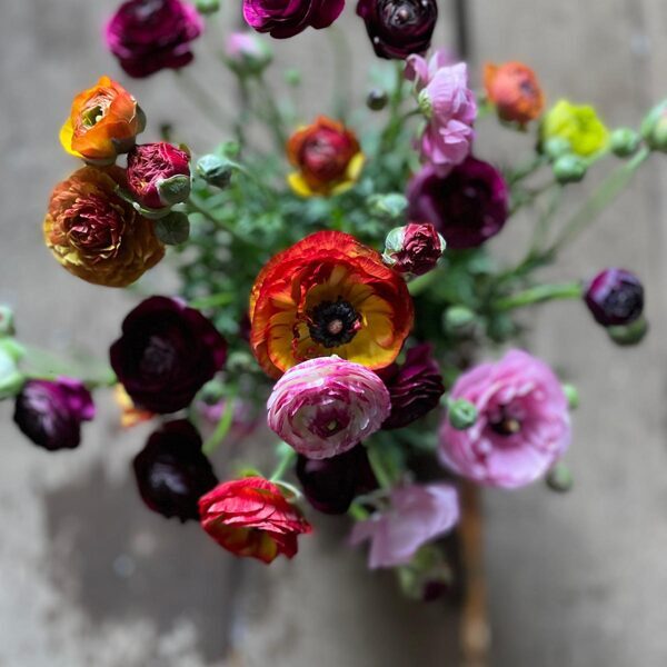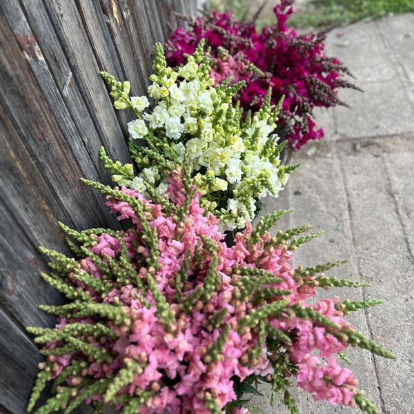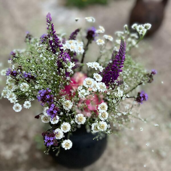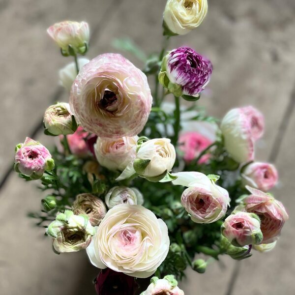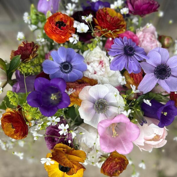 Tulpes, anemones, ramunkuļi, maipuķītes, laumutītes, peonijas, skabiozas, puķuzirņi, lefkojas, kampanullas, kosmejas, cinnijas, lizantes, hortenzijas, dālijas, gladiolas, mārtņrozes, graudzāles