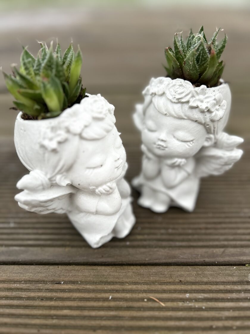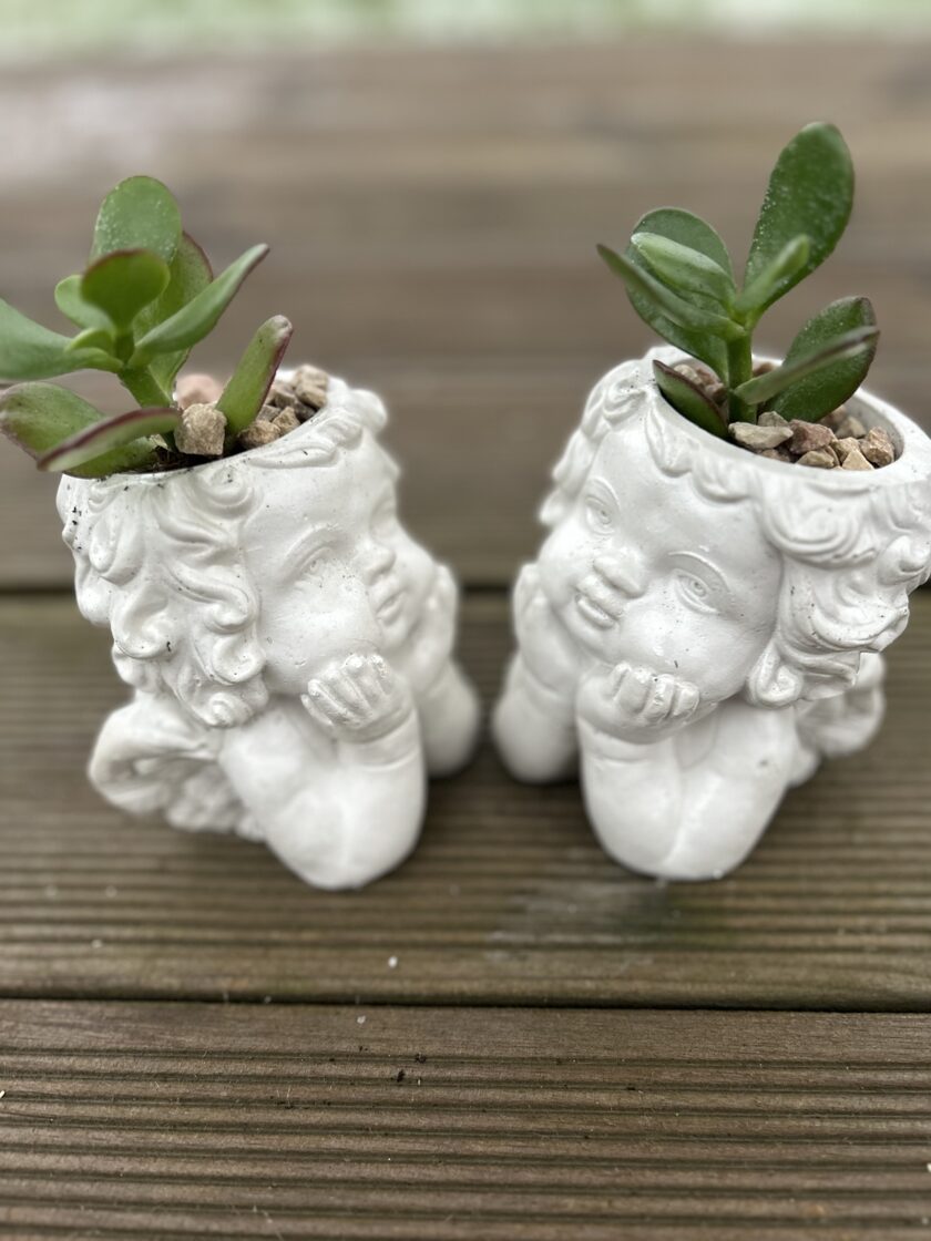 Ģipša enģelis 10x8x8cm 7,00 Papildinot ar sukulentu 9,50