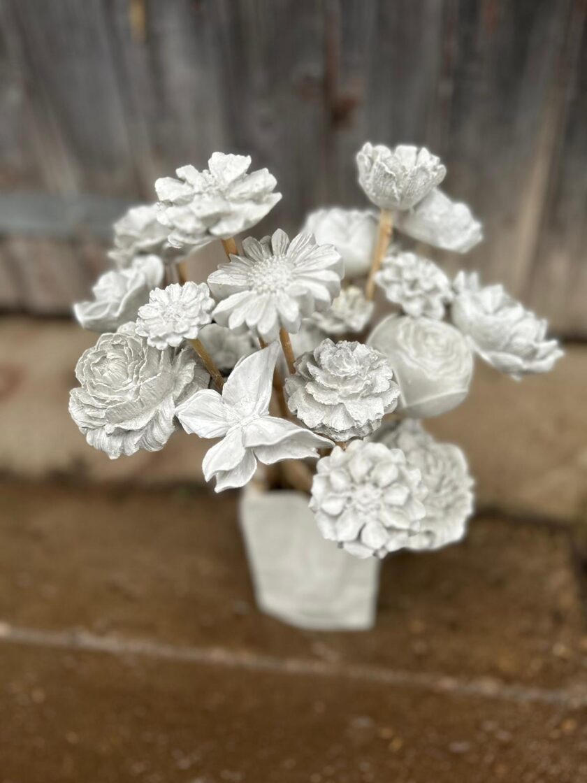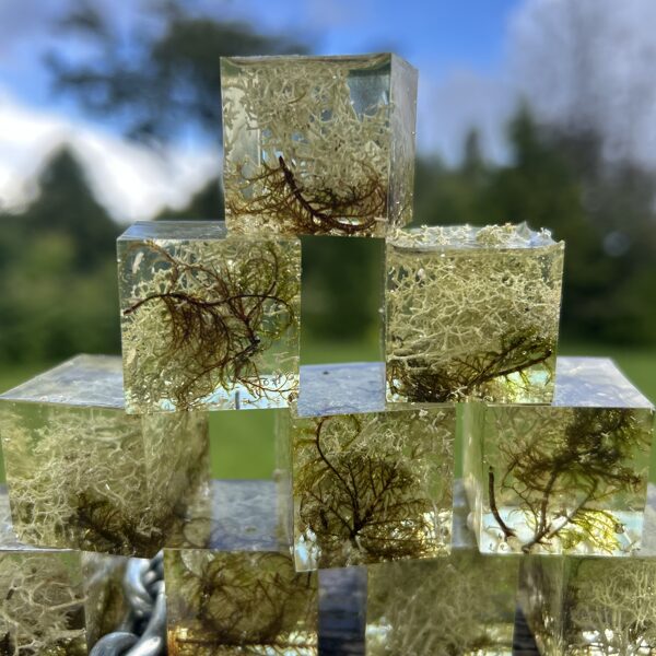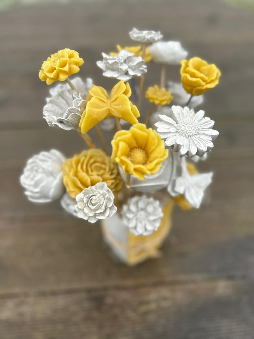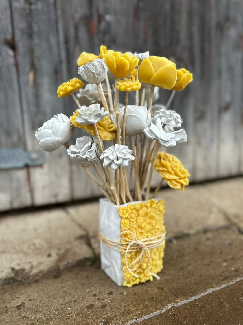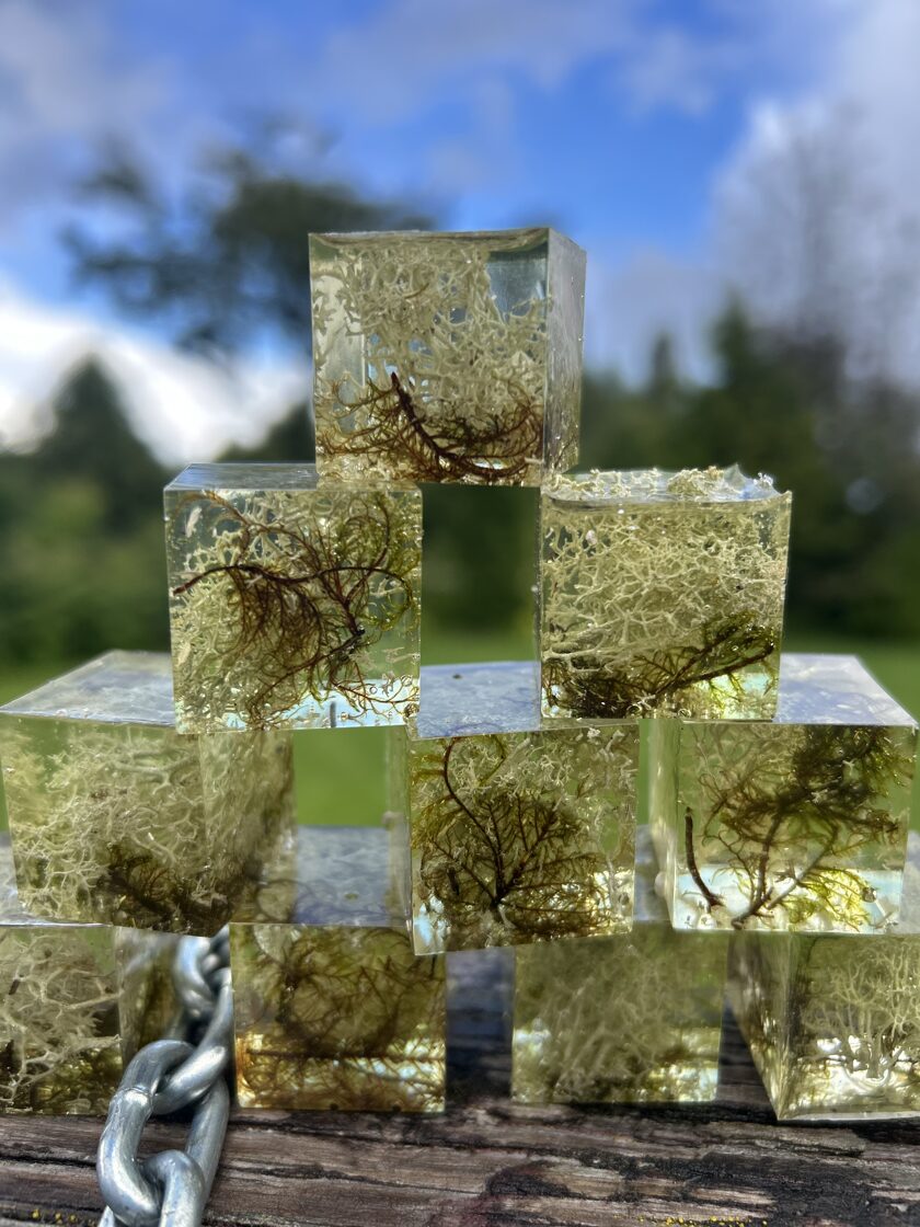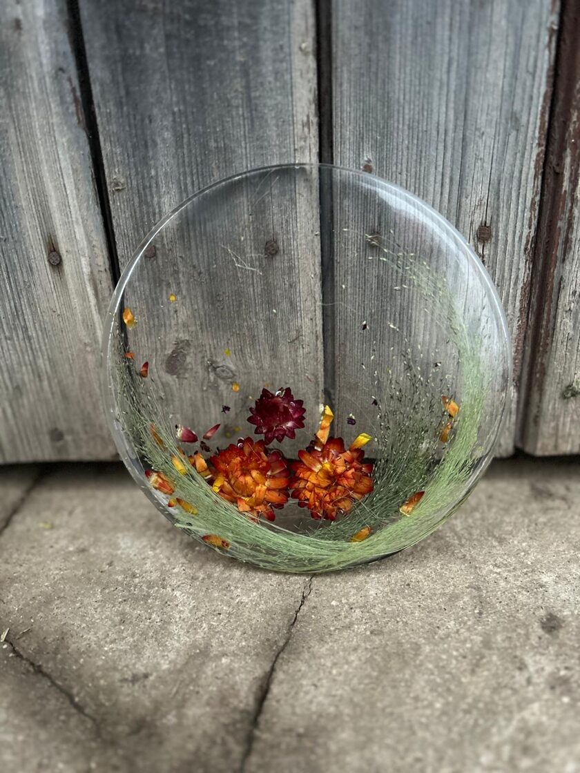Ģipsis, bišu vasks, epoksīda sveķi kompozīcijās un dekoros.