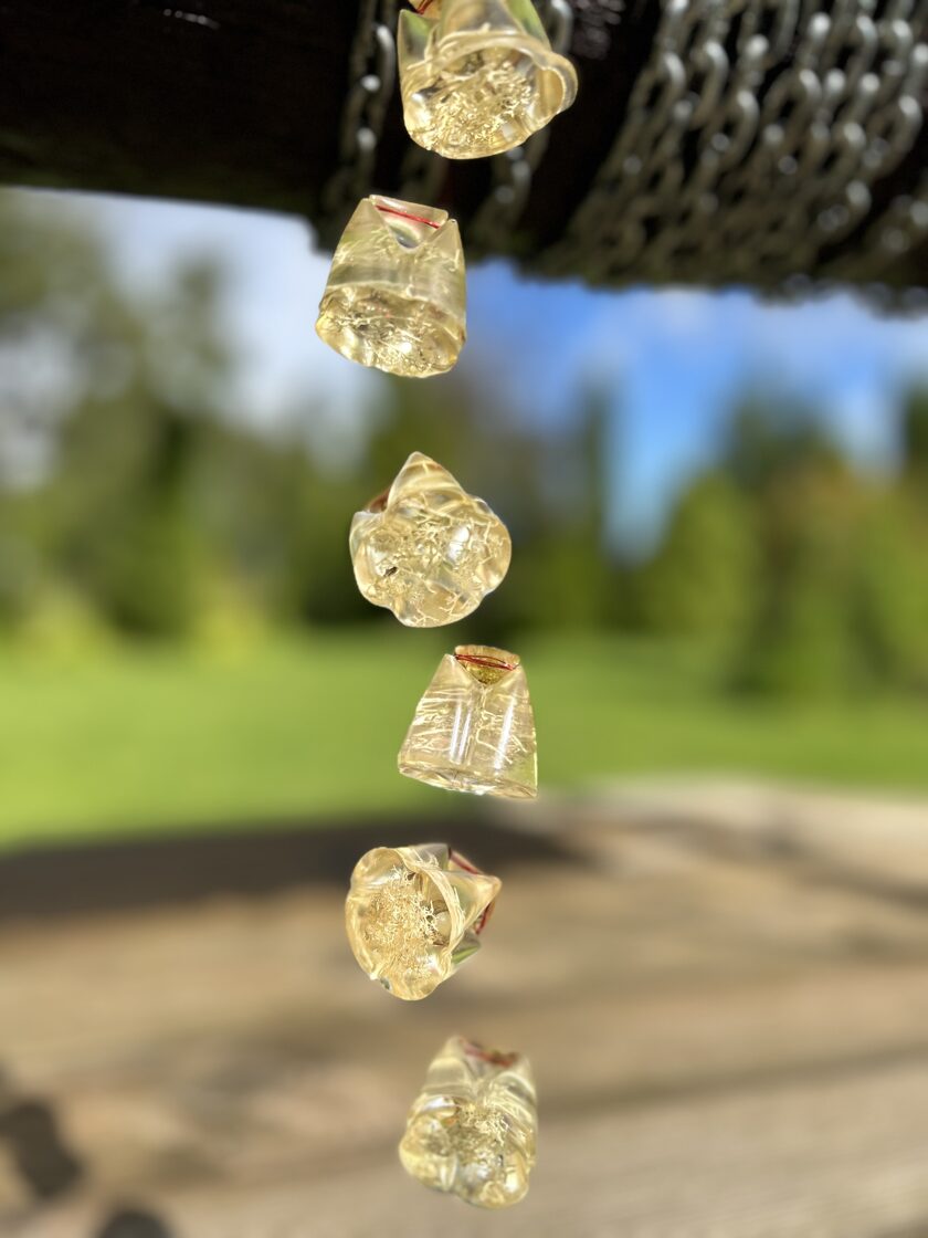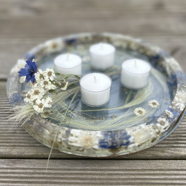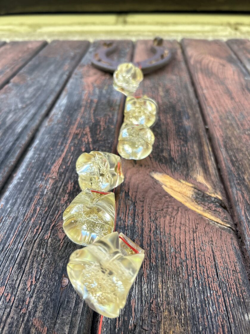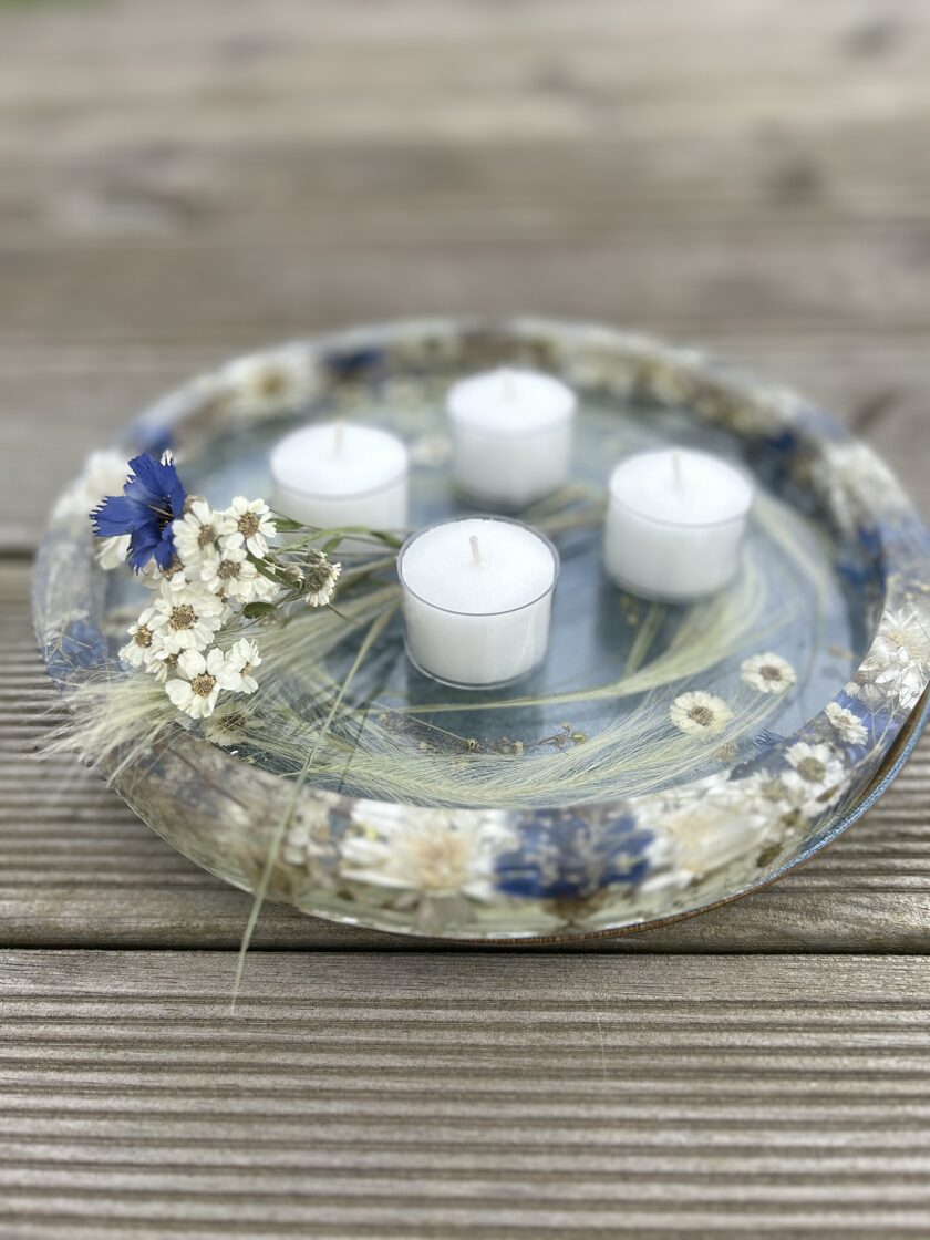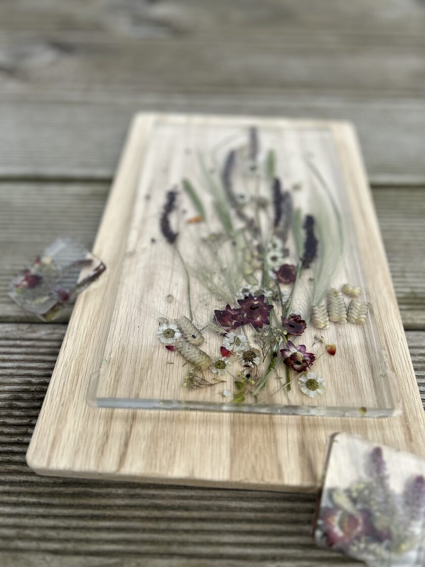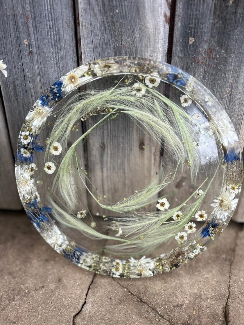 Ģipsis, bišu vasks, epoksīda sveķi kompozīcijās un dekoros.