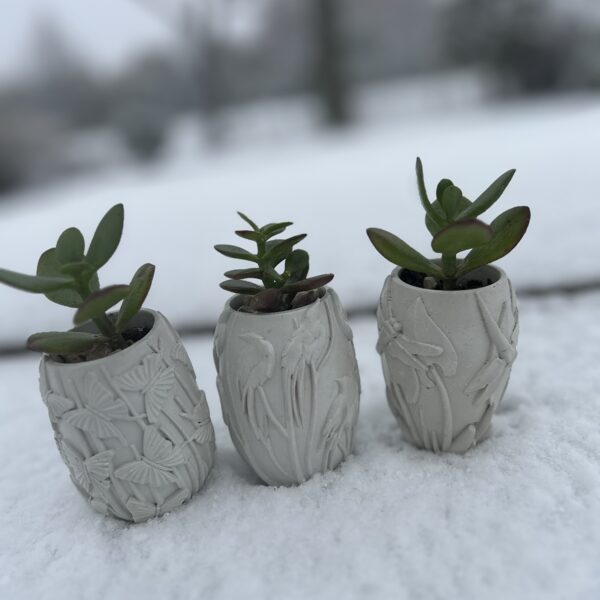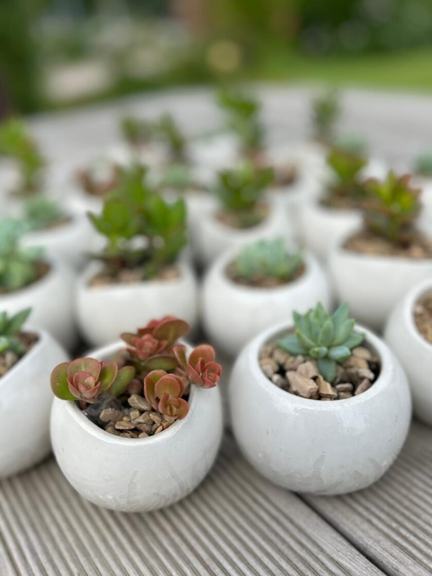Ģipša trauks ovāls/apaļš ar sukulentu 6,00 6x6x6cm -