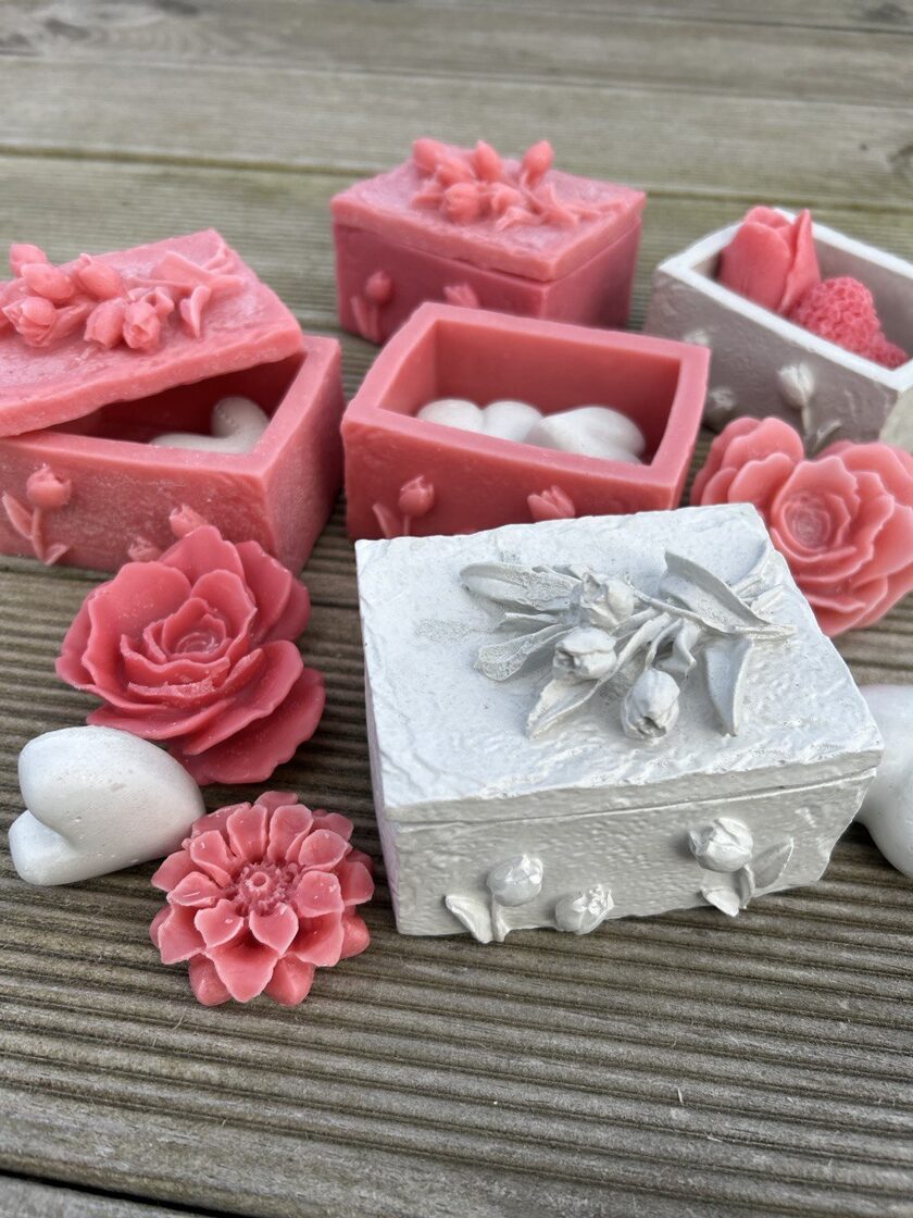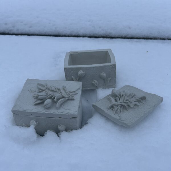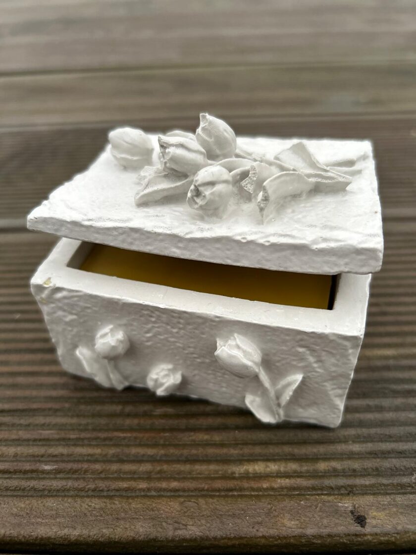 Ģipša lādīte ar vaska sveci 9,00 Ģipša lādīte ar sirsiņām 8,00 9x7x4cm -