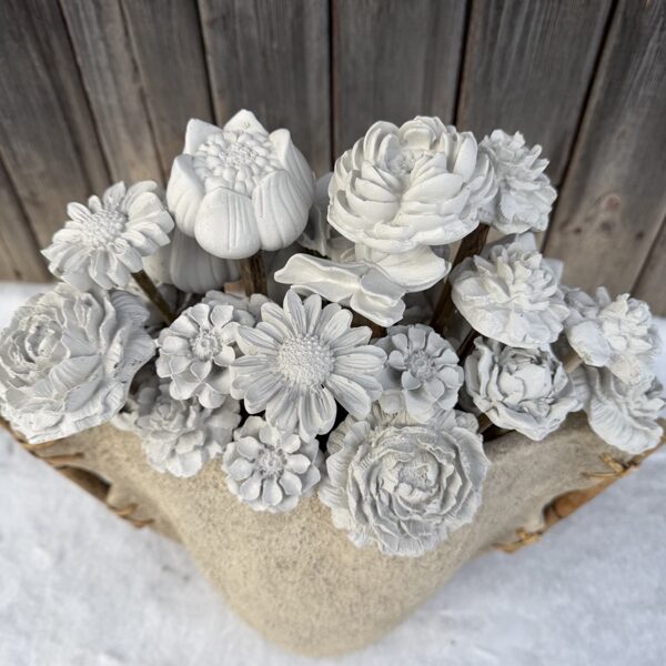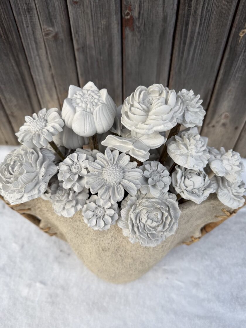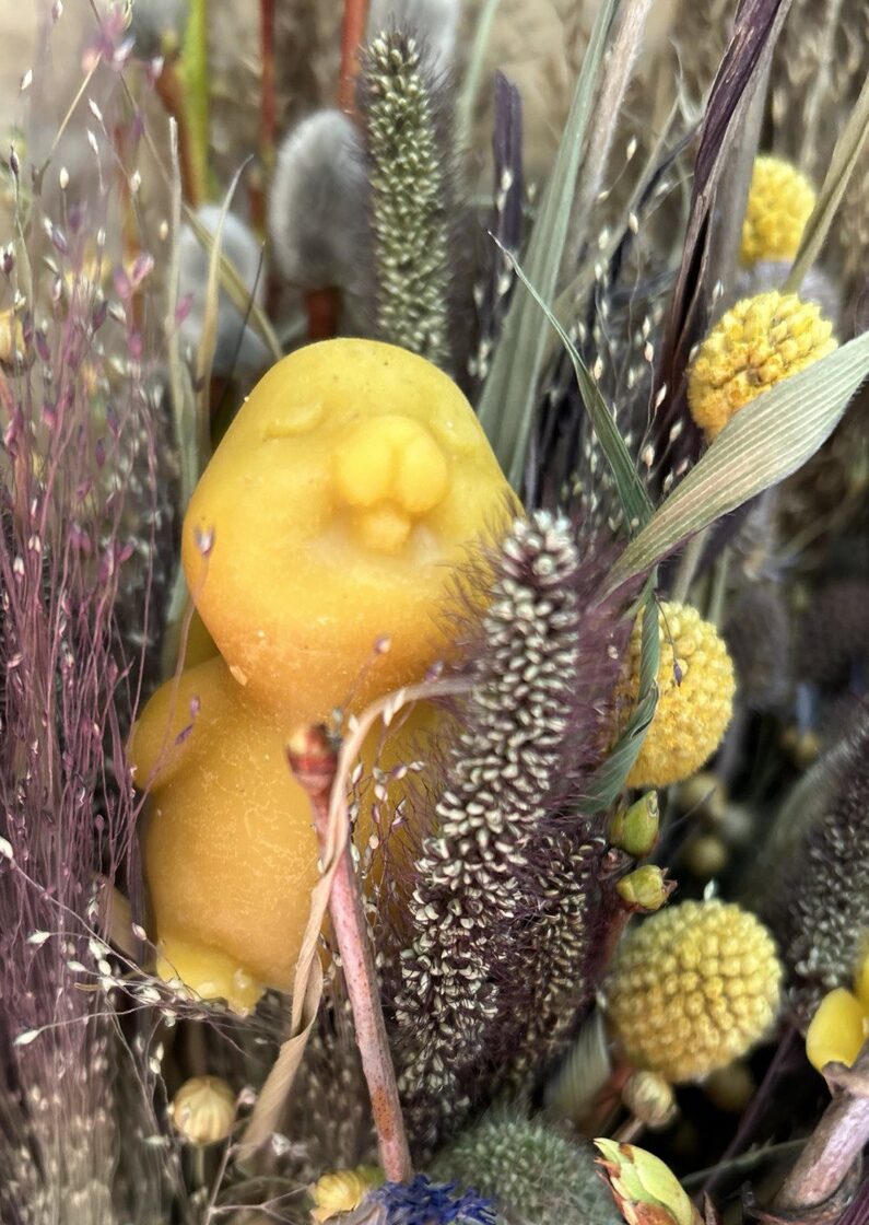 Kompozītmateriālu transformējami dizaina priekšmeti ar sausziediem un bišu vasku